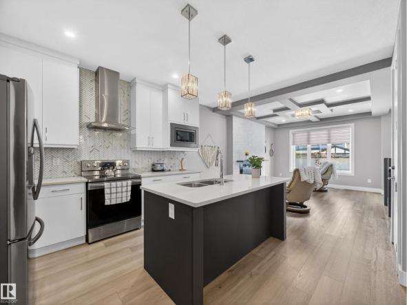 Built by Sterling Homes, this front-attached home in Forest Ridge offers bright, modern living in a quiet, family-focused Fort Saskatchewan community. Triple pane windows and 9’ ceilings enhance the airy main floor, where a welcoming foyer leads past a convenient half bath to a stylish kitchen featuring quartz countertops, a large island, ceiling-height cabinetry, full-height tile backsplash, chimney hood fan,…